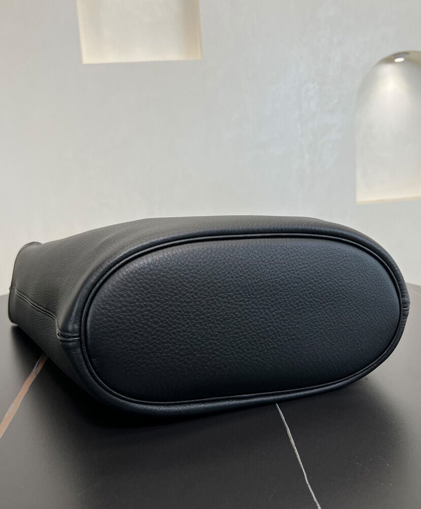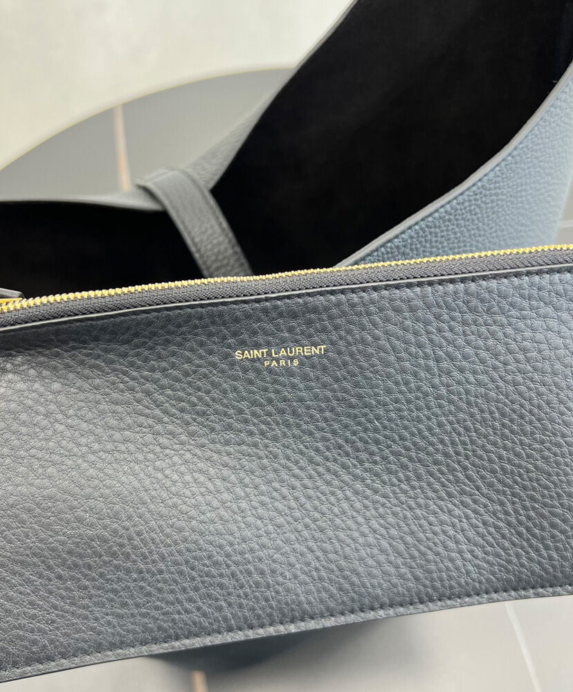 The Saint Laurent hobo bucket version of the iconic Le 5 a 7 in finely grained leather, defined by its leather tab closure decorated with the CASSANDRE. Spacious and lined in tonal suede, it features one main compartment with an inner zip pocket. An adjustable strap allows for bespoke carry options.