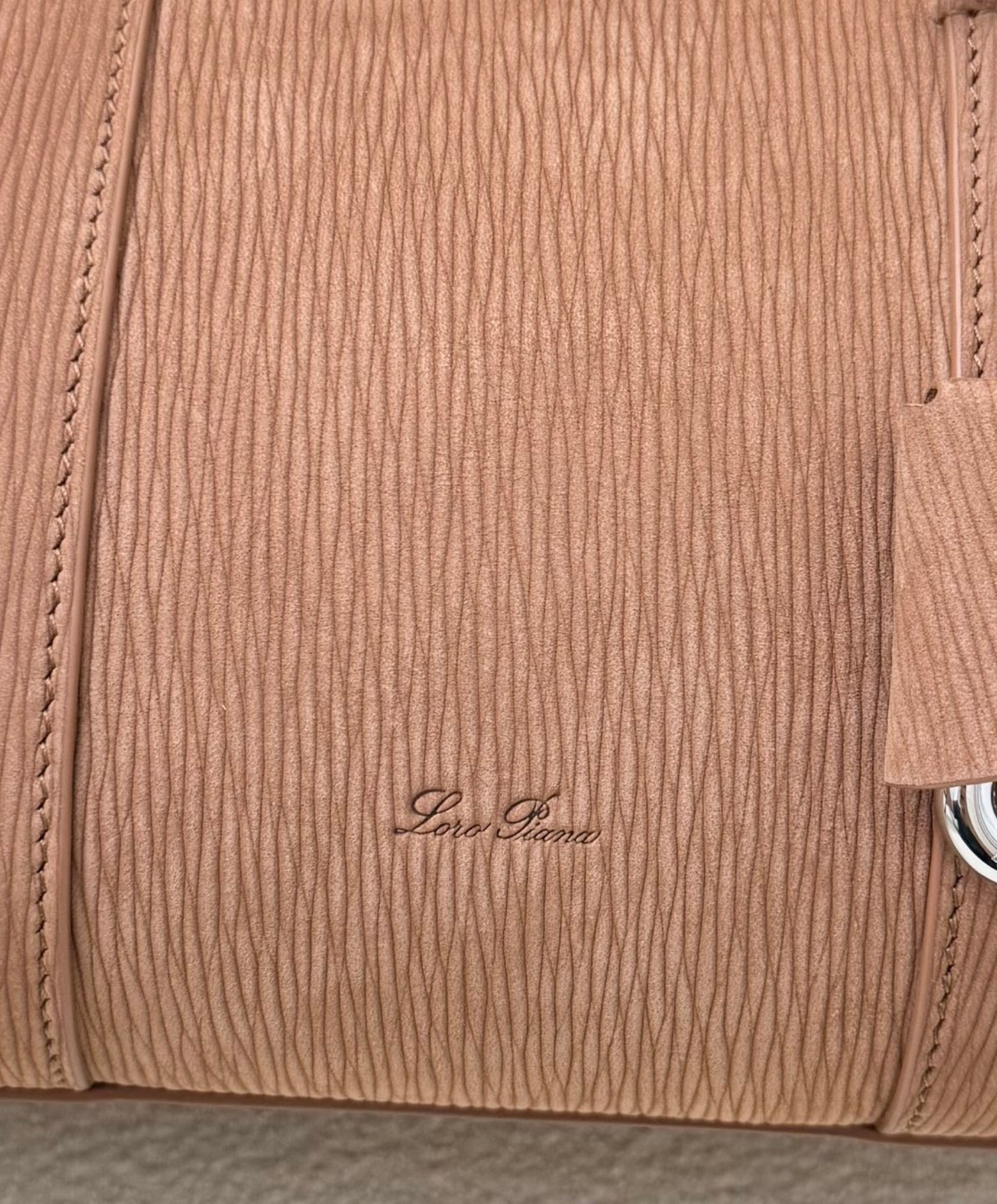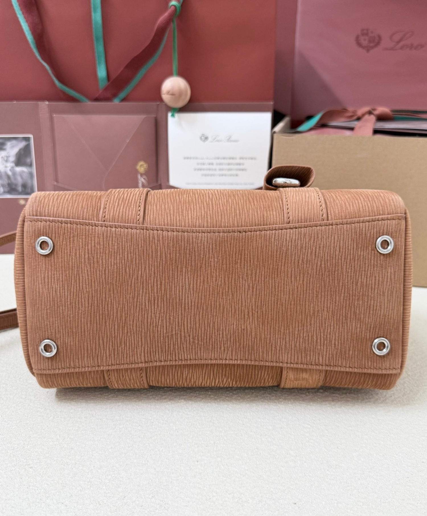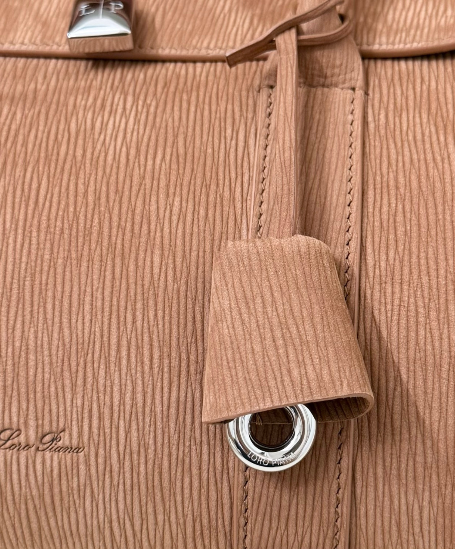 The Loom bag L25 pays homage to Loro Piana's century-spanning heritage in fabrics and fibres – the metal bar beneath the flap evoking the gentle cascade of cloth draped across the textile loom. Crafted in textured Nubuck Zibeline leather, it is anchored with a refined padlock that can be worn closed or open for a more relaxed look that retains its signature charm. The timeless accessory is ideal for carrying in hand.