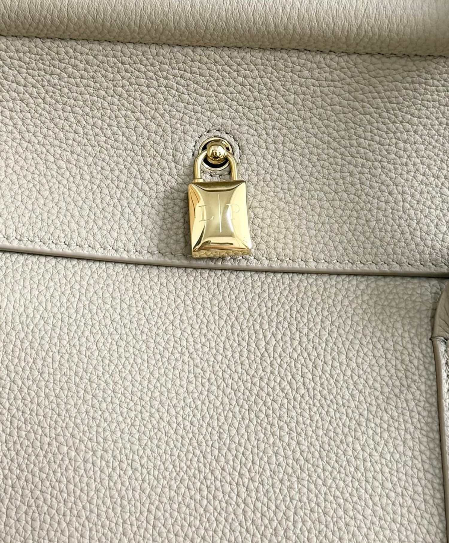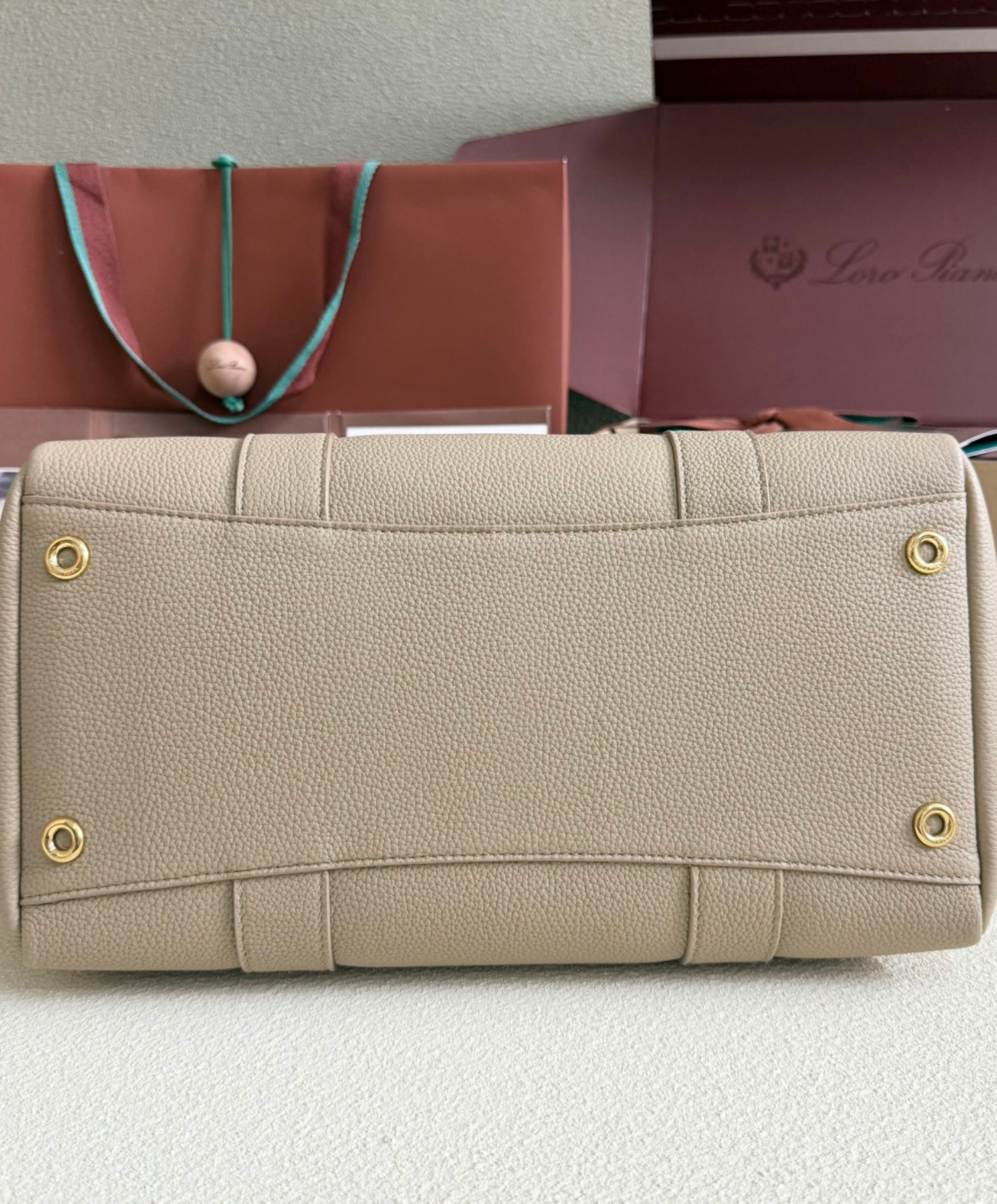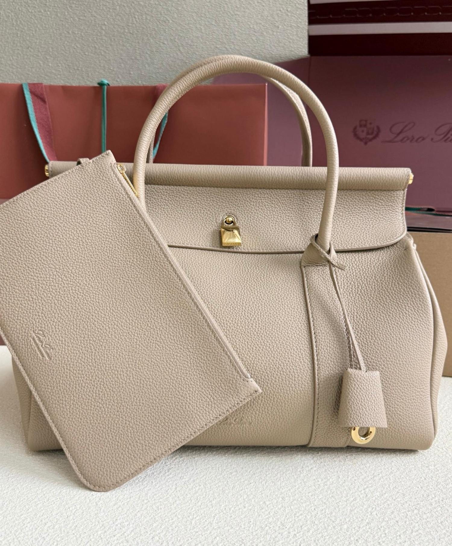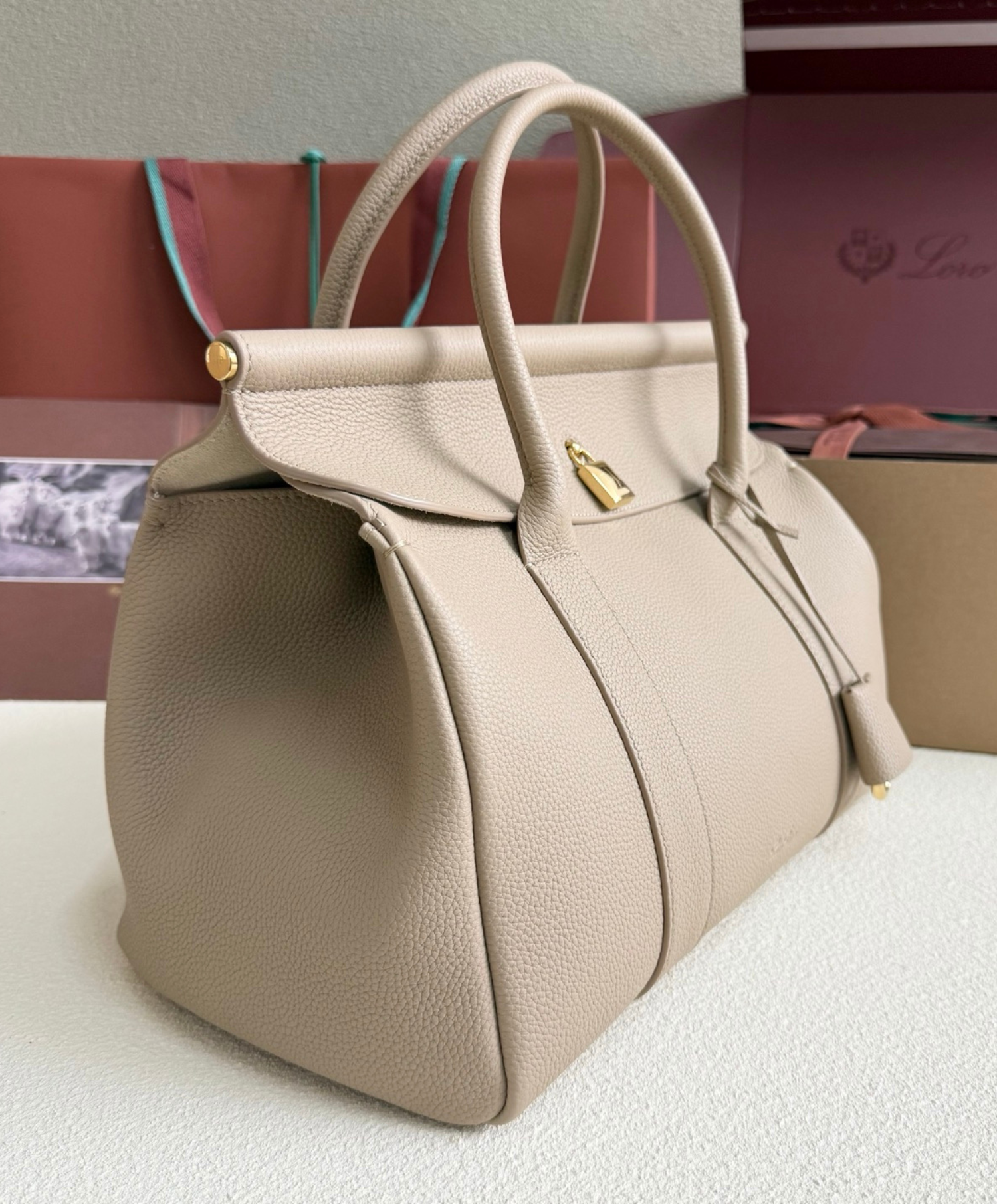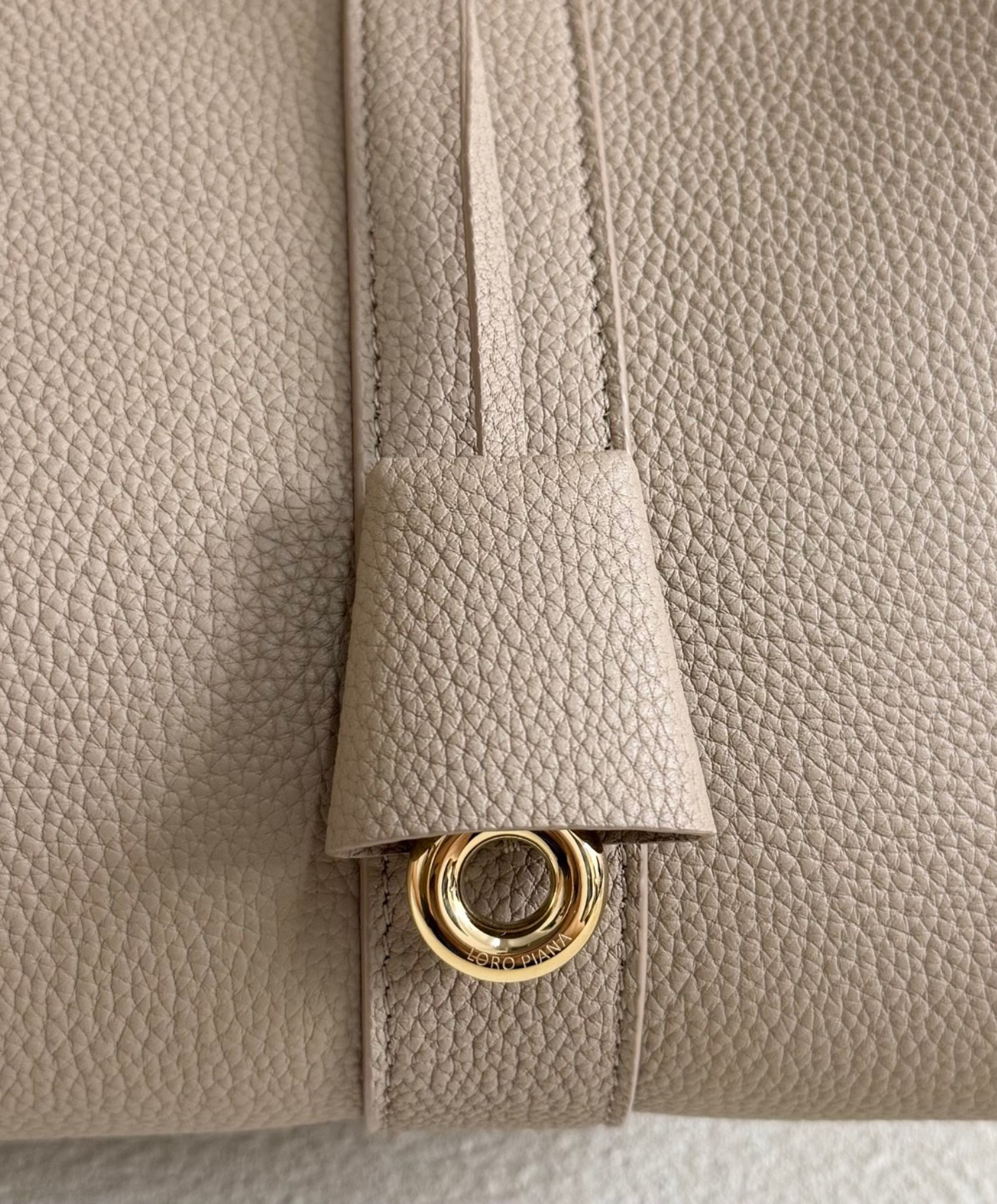 The Loom bag pays homage to Loro Piana's centuries-old textile heritage, with the metal bar beneath the flap evoking the gentle cascade of fabric draped across an artisan's loom - a subtle nod to the brand's storied weaving techniques. Uniquely textured yet lightweight in exclusive calfskin, the refined padlock that closes the bag can be unfastened, giving it a more relaxed look. Loom can be worn closed or open without losing any of its charm or personality. Even when worn unfolded, the bag gracefully closes by itself.