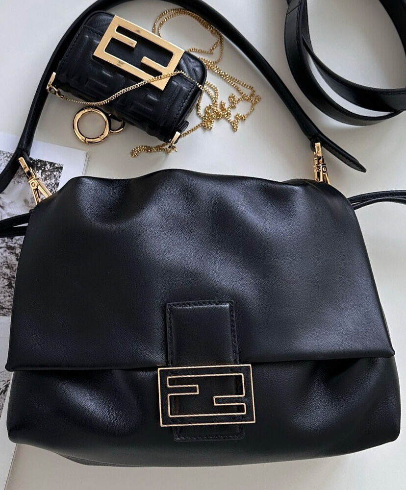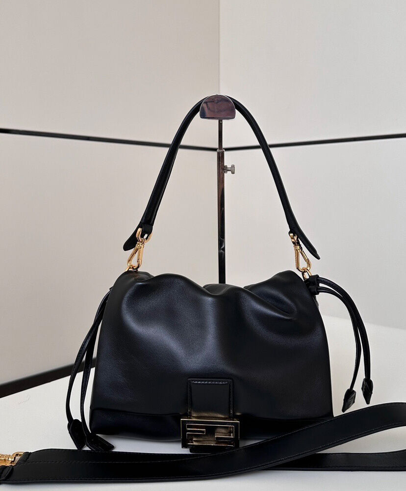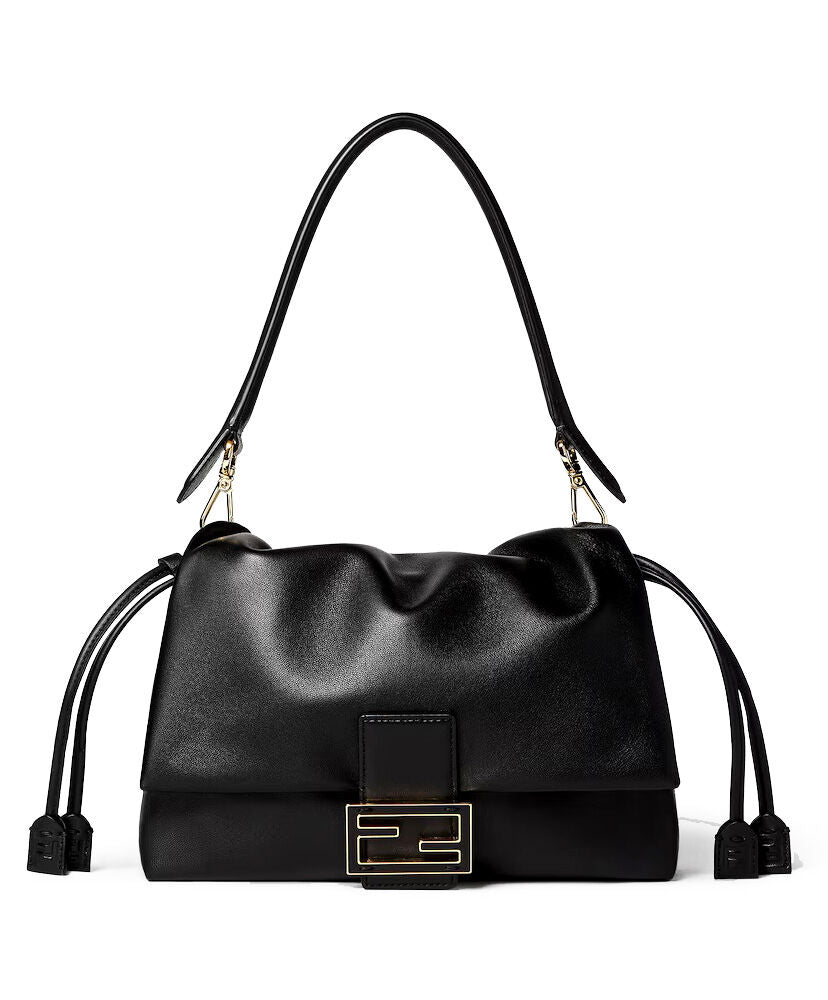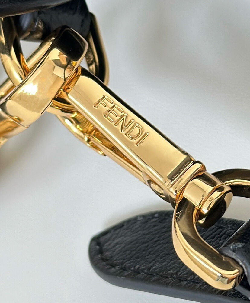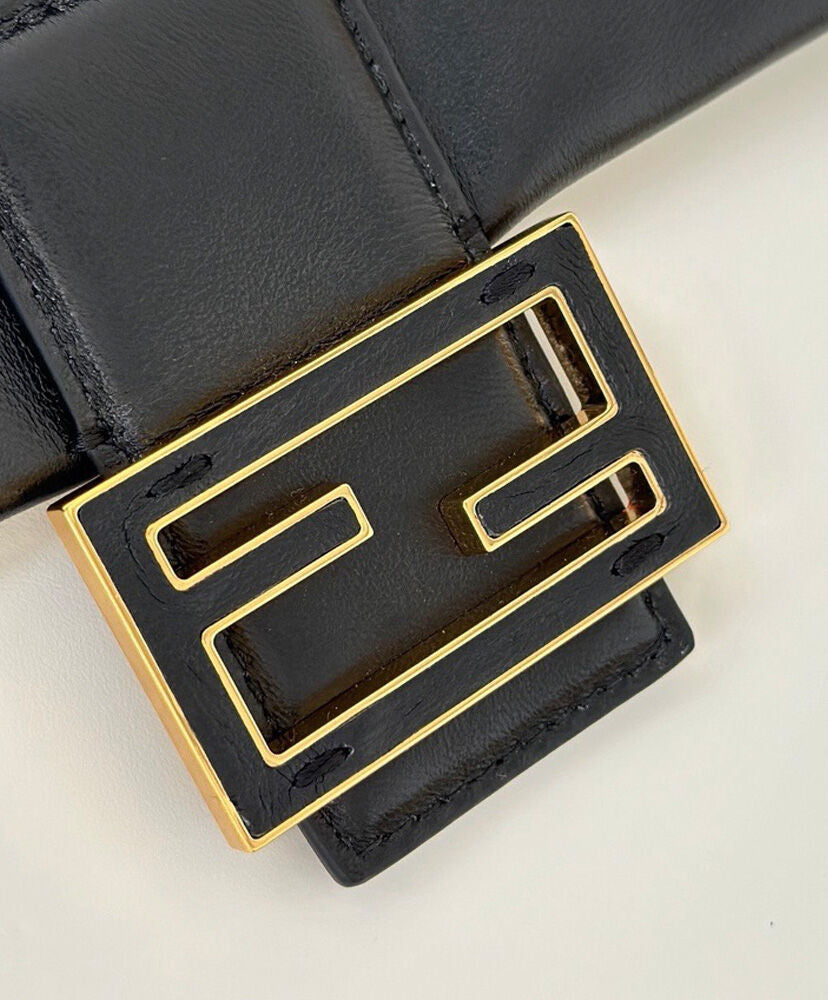 Made of soft, black nappa leather embellished with a metal FF clasp with tone-on-tone leather insert.