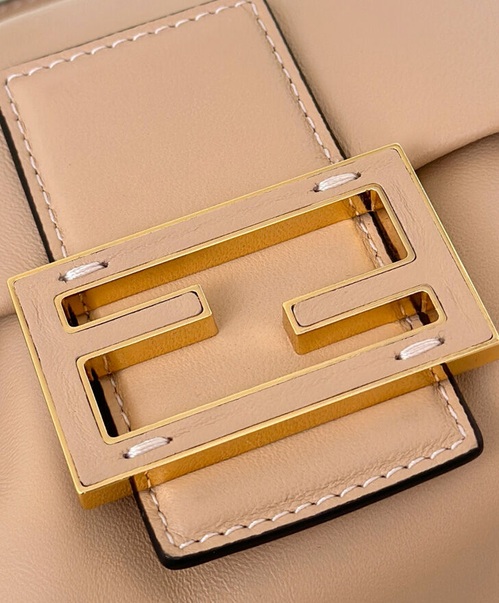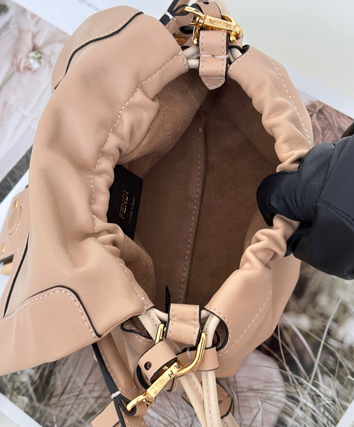Made of soft, light pink nappa leather embellished with a metal FF clasp with tone-on-tone leather insert.
