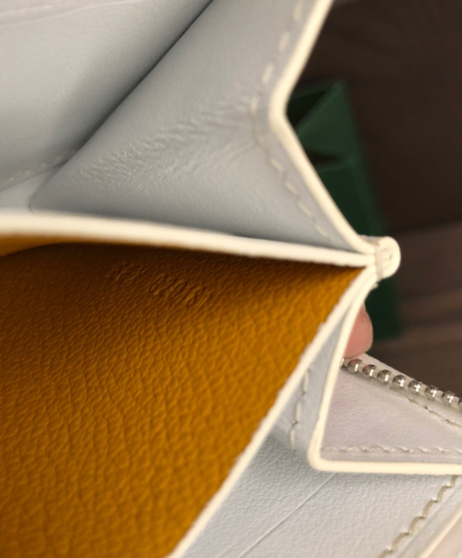 The Matignon PM wallet is a compact shape and closes securely with a zip. Its many inside compartments are ideal for cards, notes, change and other papers making it a complete wallet that can easily slip into our small bags.