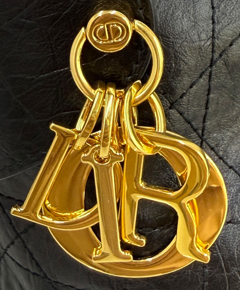 New for Cruise 2026, the Dior Voyage bag combines soft lines with sophisticated details for a harmonious silhouette. The black crinkled calfskin leatherwork showcases Flat Macrocannage topstitching in an interpretation of the House's iconic motif. The supple construction is enhanced by gold-finish metal D.I.O.R. charms and finely crafted leather accents for added structure, while the main compartment has a secure and practical two-way zip closure. Featuring a top handle with adjustable buckles, the medium bag can be worn over the shoulder as a daily companion.