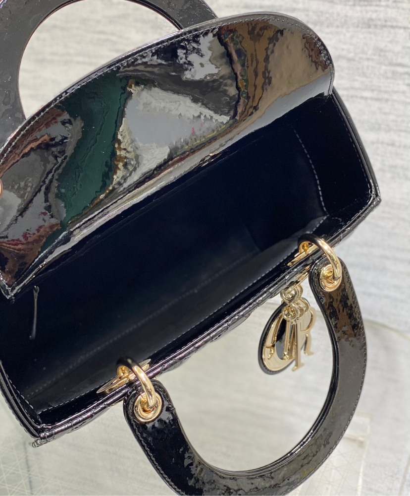 The Lady Dior bag is a true icon of luxury and sophistication. Crafted from sleek patent leather, this bag exudes a sleek, glossy finish that adds a modern touch to its timeless design. Featuring the signature Cannage stitching, the bag's structured silhouette is both elegant and practical, offering ample space to carry your essentials in style, the medium Lady Dior bag can be carried by hand or worn crossbody.