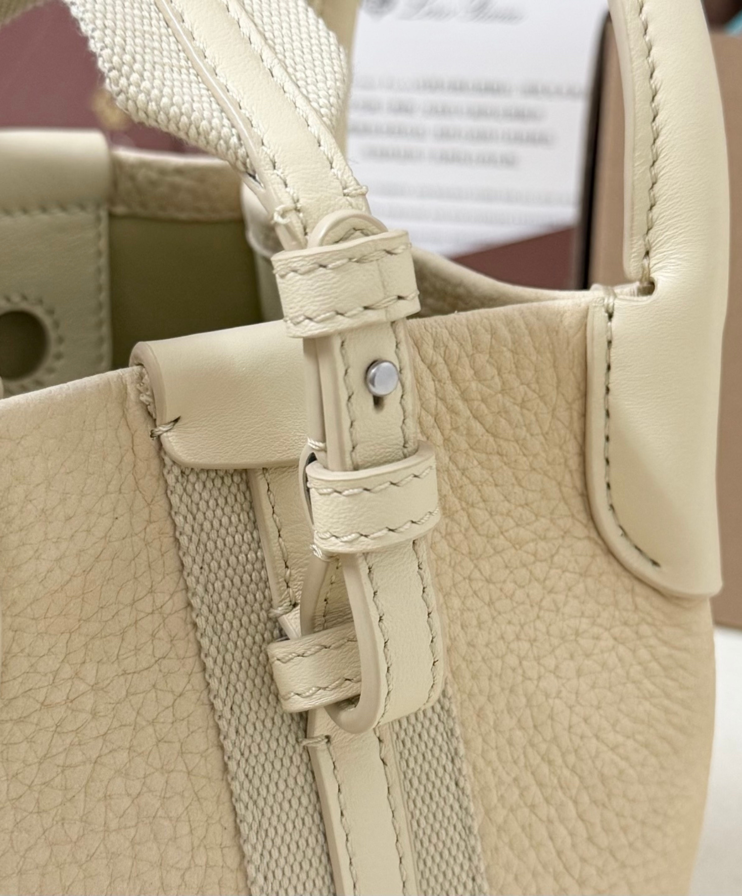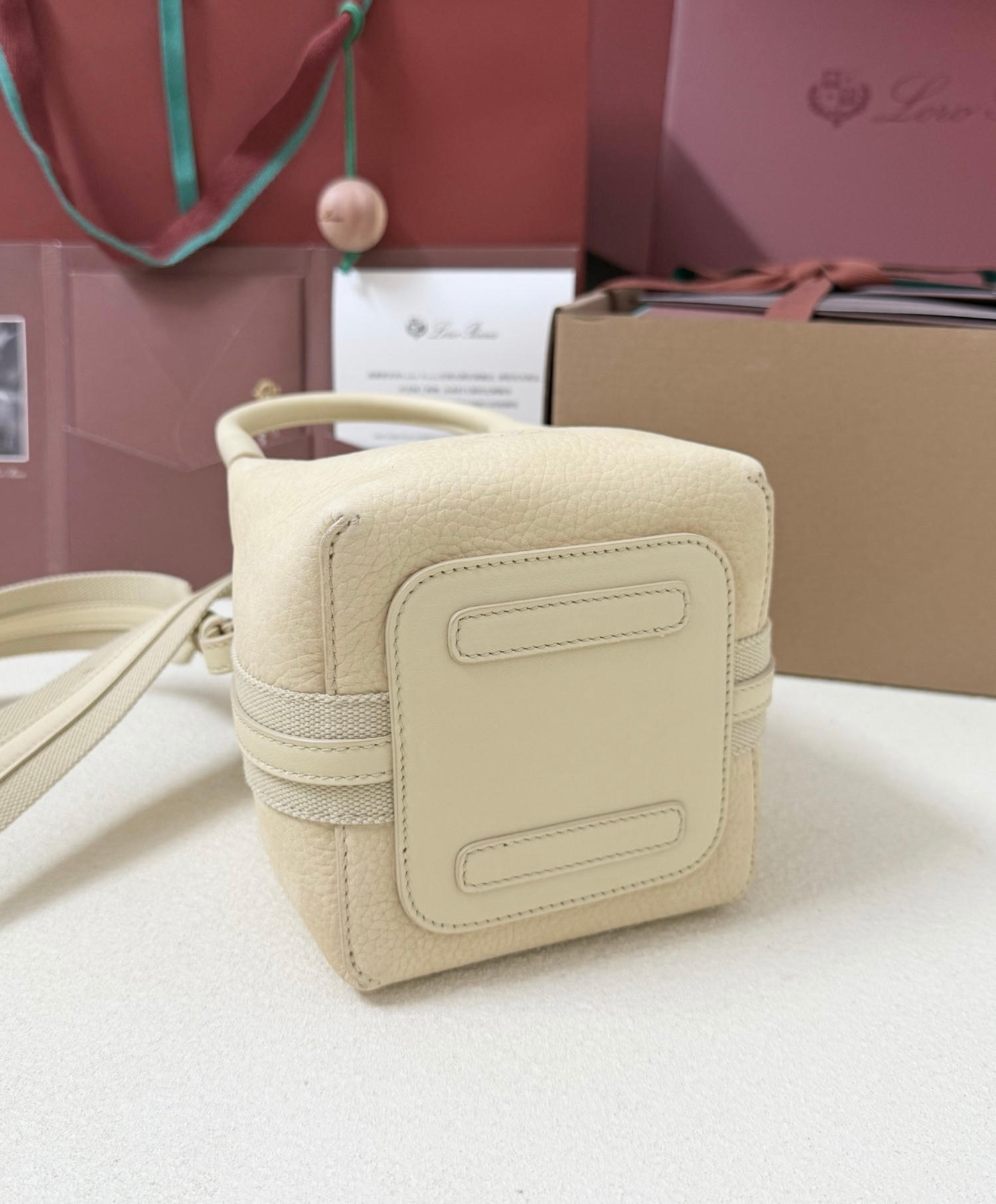 Loro Piana’s distinctive heritage is embodied in the Bale Bag — a new icon of laidback, timeless elegance. Its name and cube-shaped silhouette are inspired by cashmere storage bales, strongly evoking Loro Piana’s artisanal expertise. This handcrafted style is made from calfskin with an exceptionally soft, uniform natural grain. One-of-a-kind details and a bejewelled metal closure complete the look. The micro version of the Bale Bag combines elegance and tradition in a minimalist, modern design.