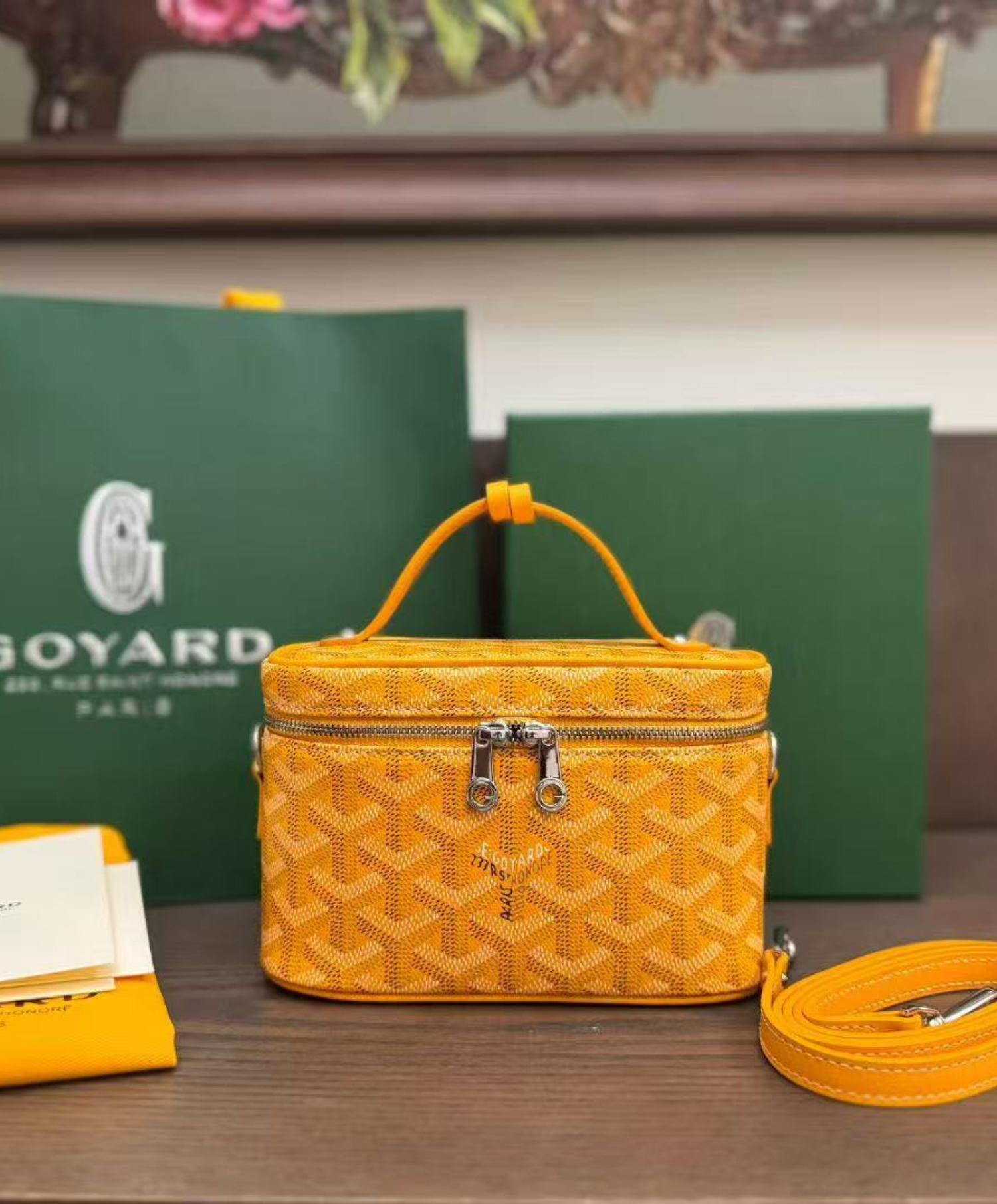 The Muse Mini vanity adopts the design codes of our Muse PM vanity in a miniaturized version. Both elegant and practical, it safely holds one's daily essentials. The Muse Mini vanity can be carried by hand, over the shoulder or cross-body thanks to its removable leather strap.
