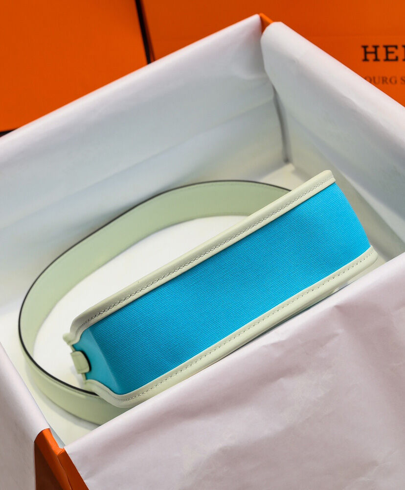 Bag in bicolor Officier canvas and Swift calfskin with contrasting lining, removable leather shoulder strap, perforated leather "H" and snap closure
