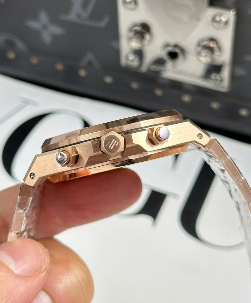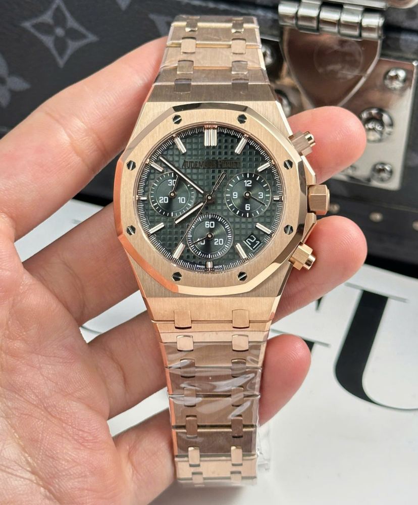 The Audemars Piguet Royal Oak Selfwinding is a striking expression of timeless elegance and luxury. Crafted entirely silver color, the 41mm case features the Royal Oak’s iconic octagonal bezel with polished and brushed finishes, embodying the collection's hallmark design.
