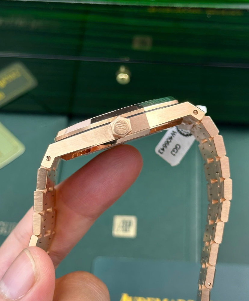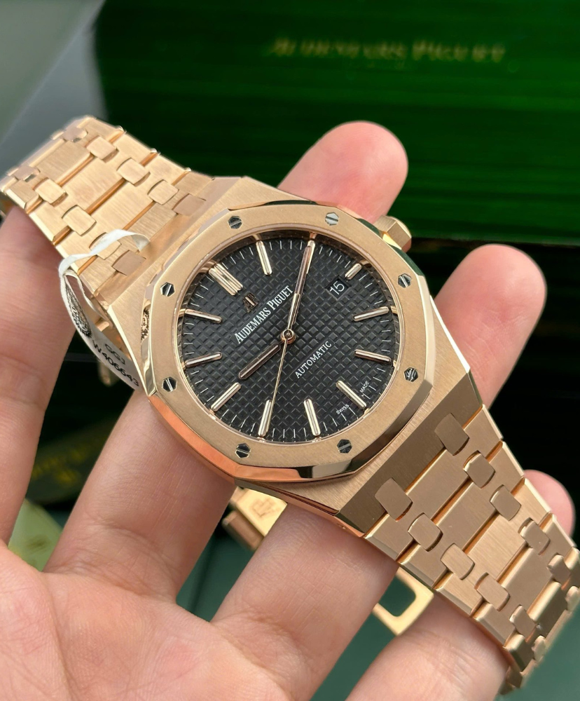 The Audemars Piguet Royal Oak Selfwinding is a striking expression of timeless elegance and luxury. Crafted entirely gold color, the 37mm case features the Royal Oak’s iconic octagonal bezel with polished and brushed finishes, embodying the collection's hallmark design.