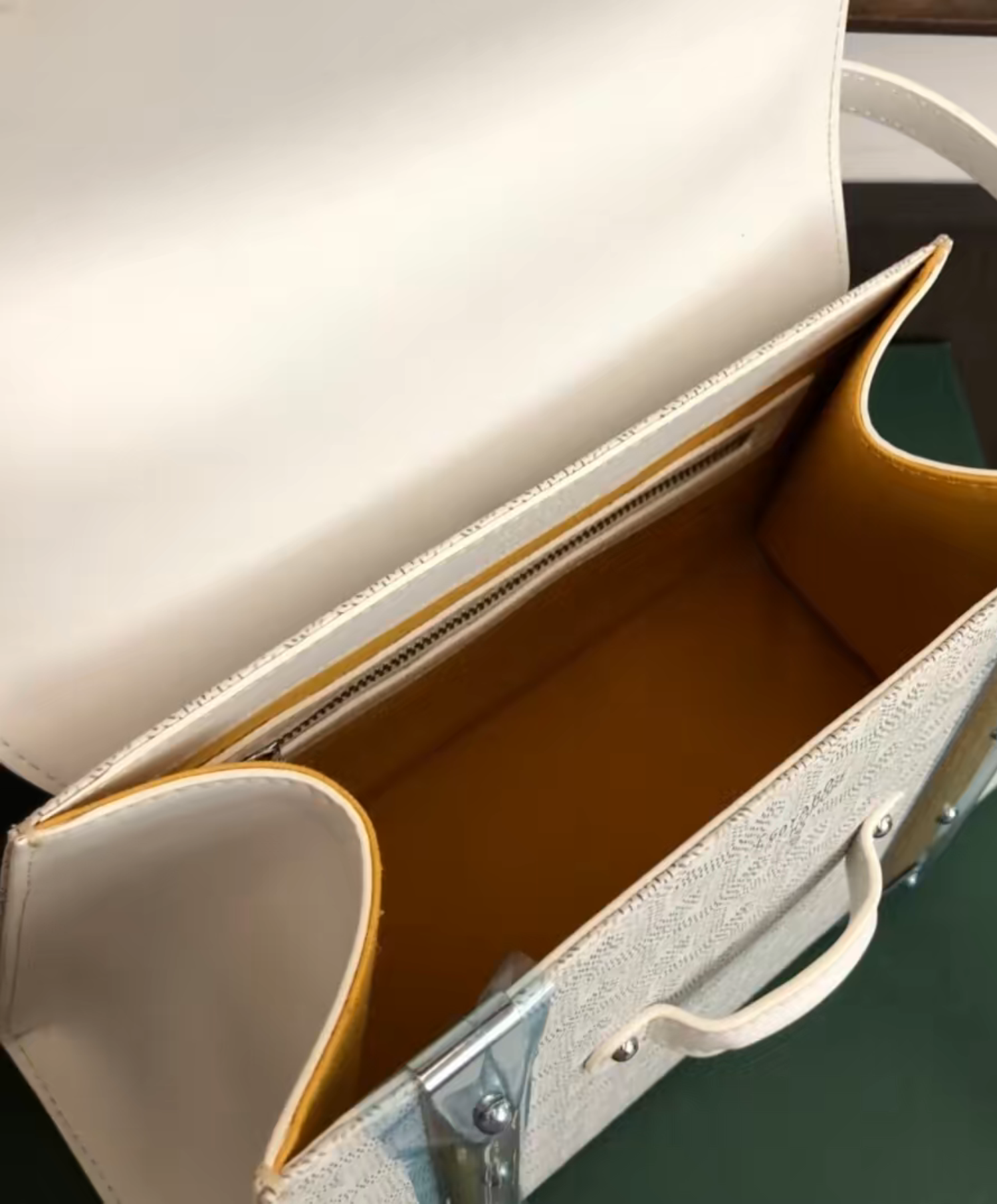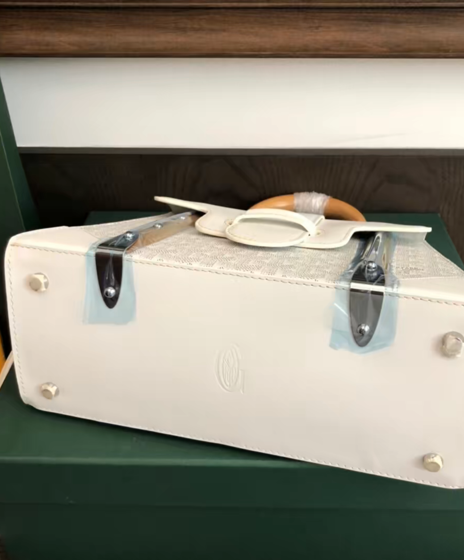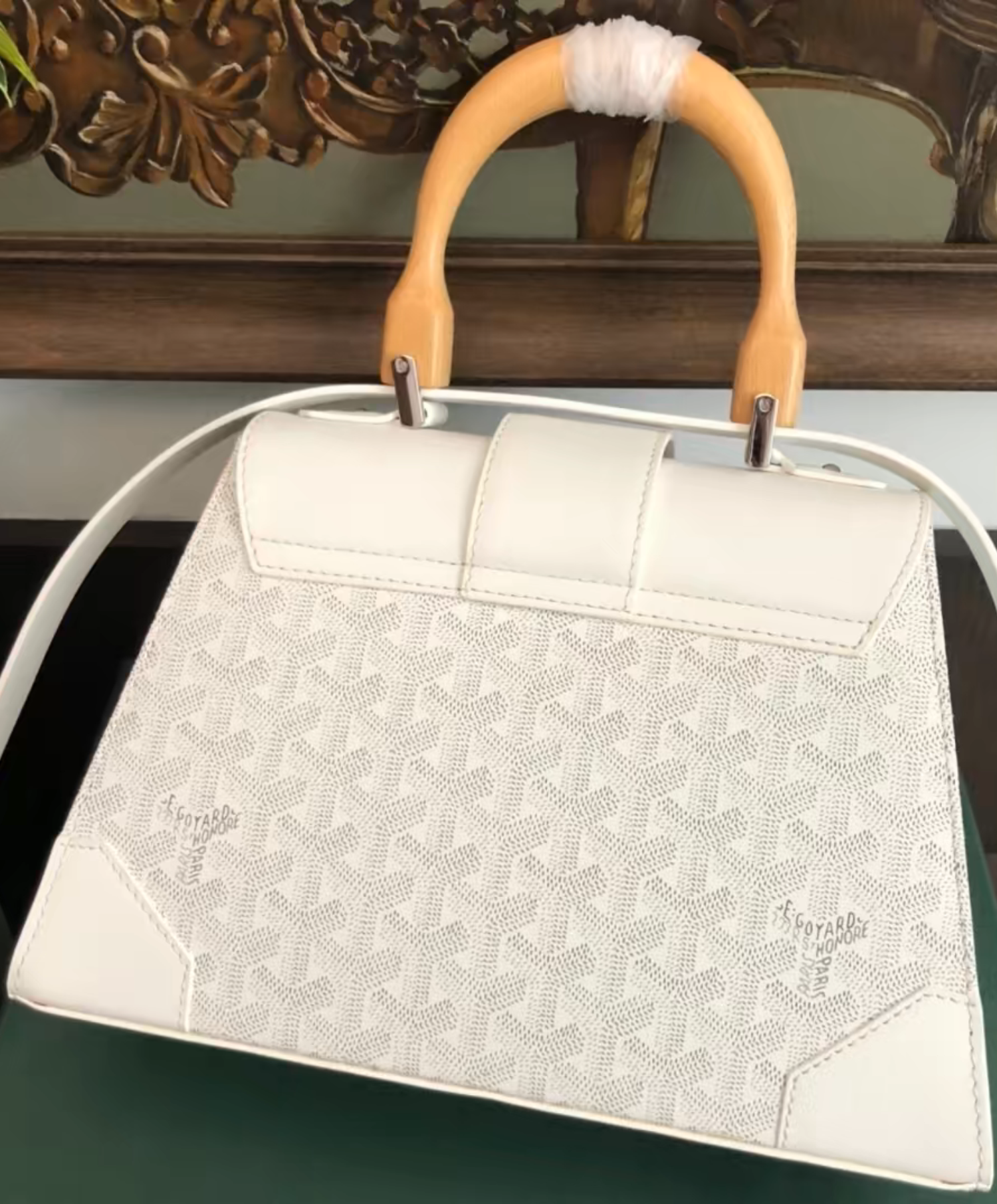 The Saigon bag is one of Maison Goyard’s emblematic pieces as it inherits all our trunk-making signature codes like the wood batons, leather corners and trunk rivets. In this structured PM format, the Saigon bag can be worn with or without a strap for an elegant evening style.