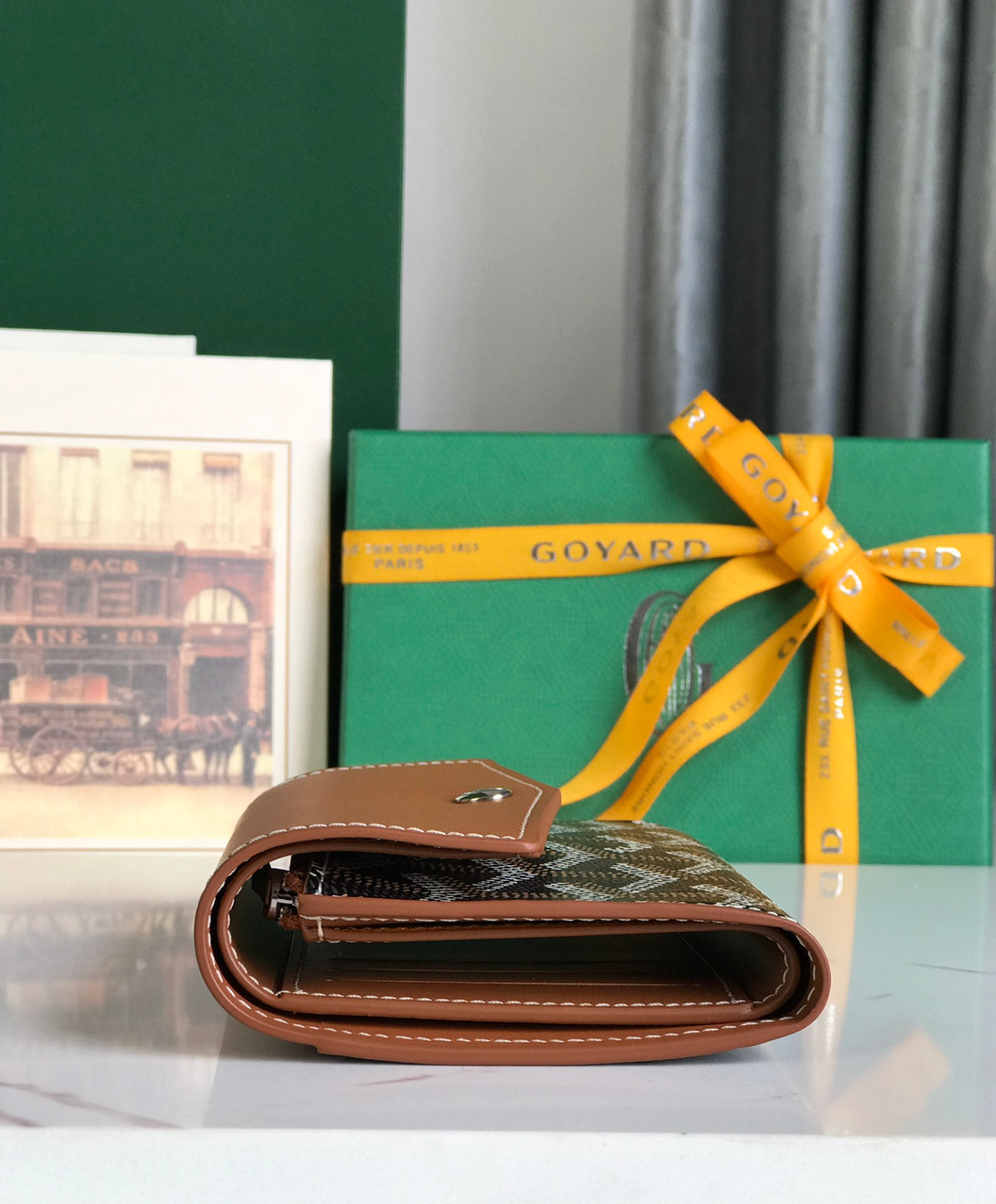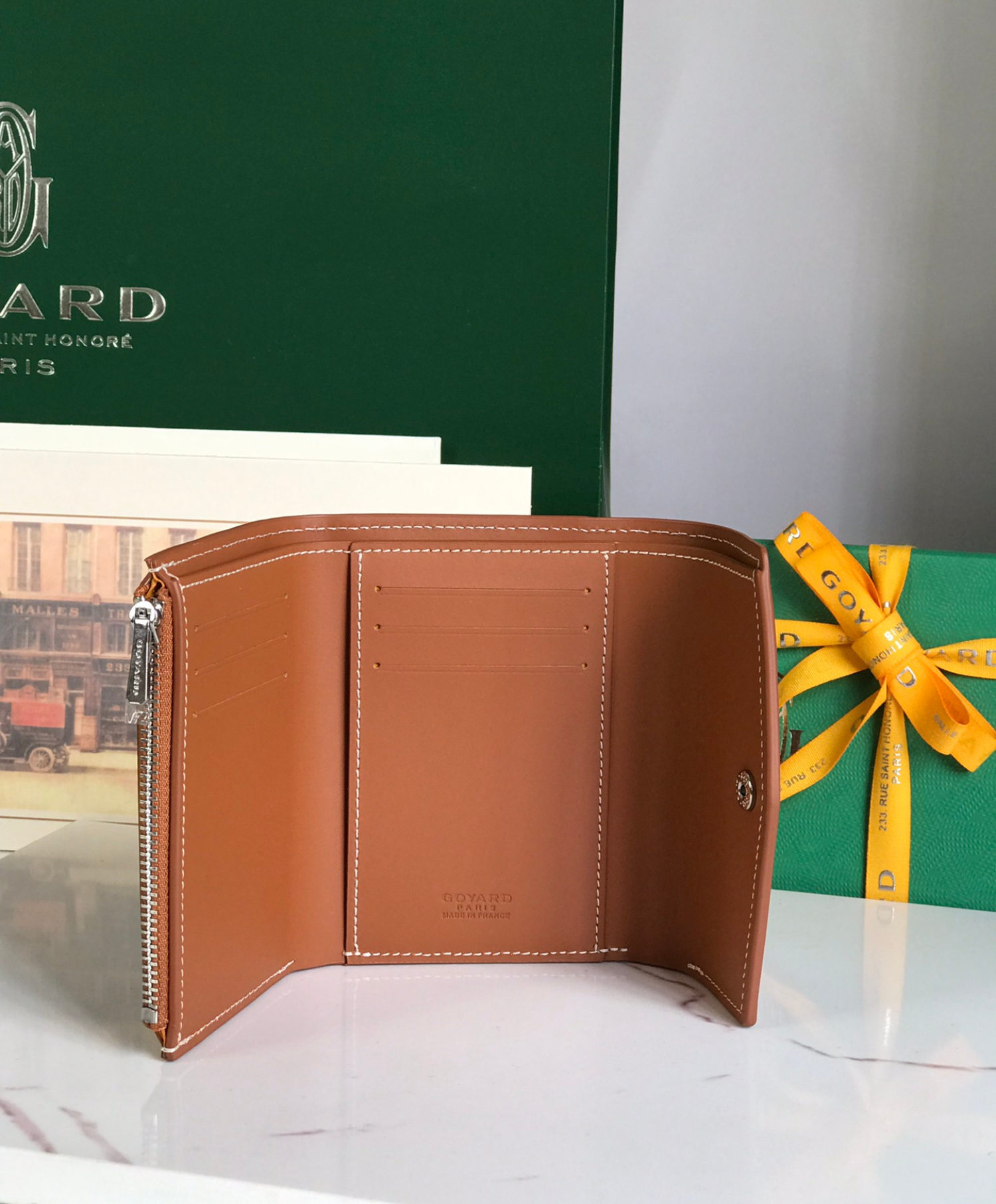 Lightweight and compact, the Saint-Gabriel wallet opens in three-fold and can hold 7 cards, bills, loose change and various papers. The wallet safely holds all belongings thanks to a snap button on the front flap.