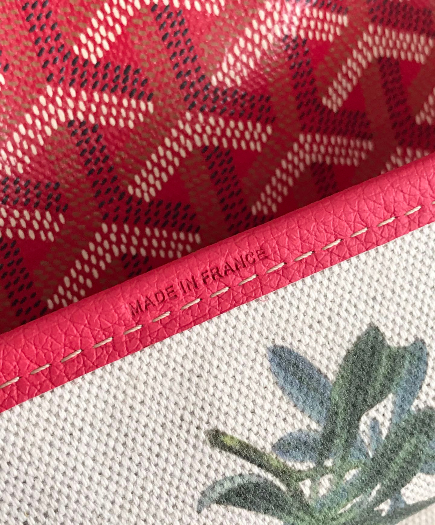 For this 2025' limited edition, the Saint Louis GM bag dresses up in two exclusive colors of Goyardine canvas, inspired by the vibrant hues of linen flowers: Iris and Fuchsia. The inner side of the canvas is decked out in a floral pattern inspired by herbariums of yesteryear, to better highlight the Saint-Louis's reversibility, historically one of the bag's strong suits.