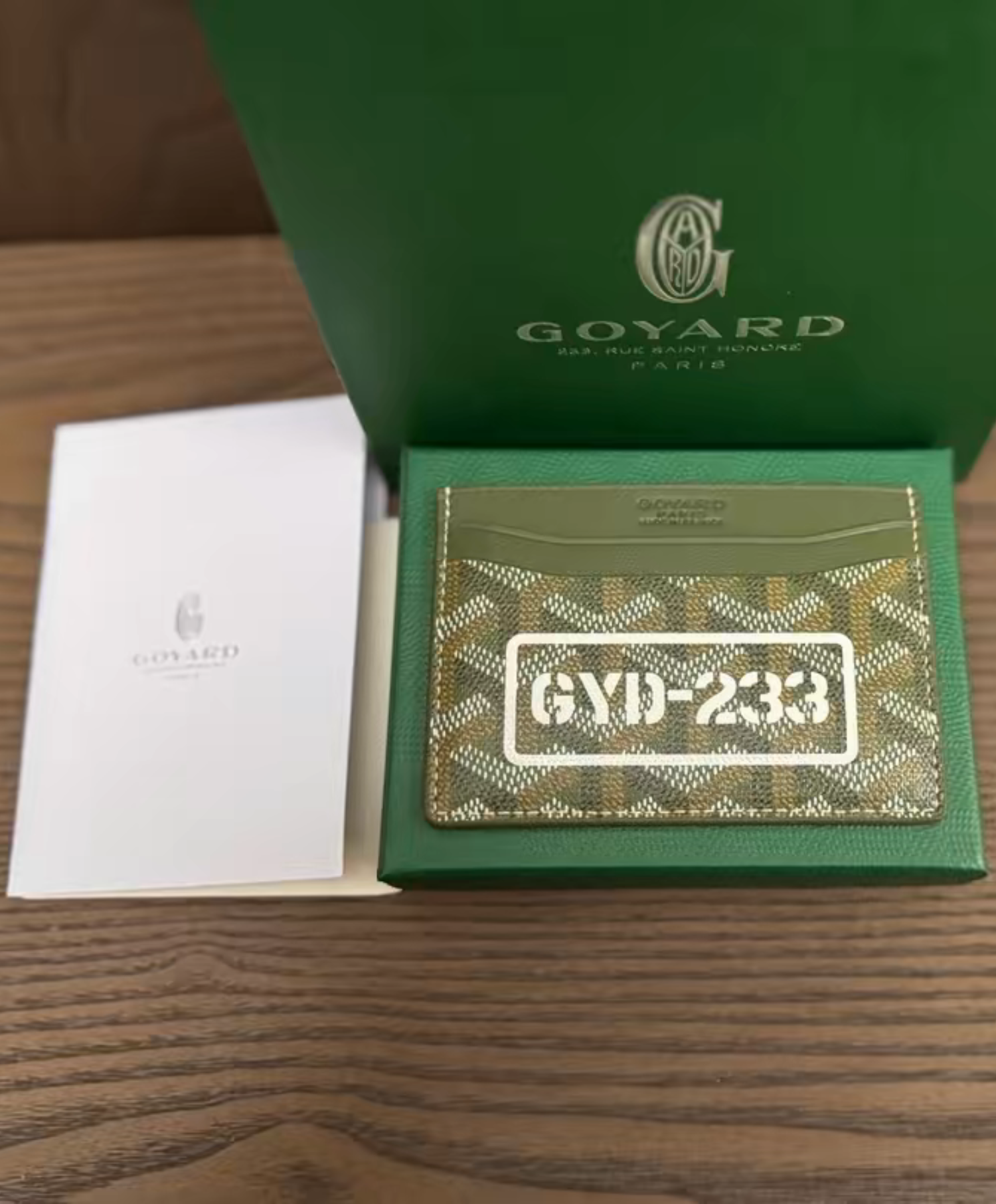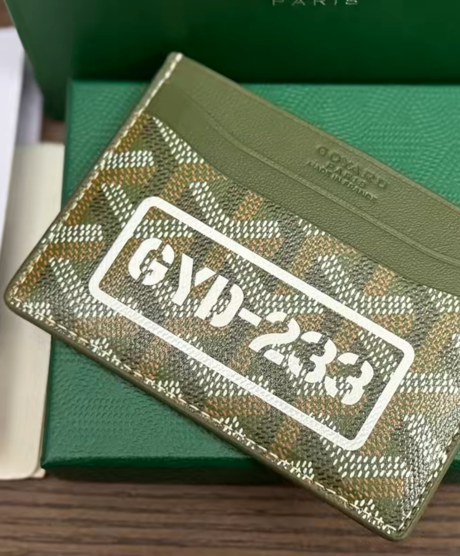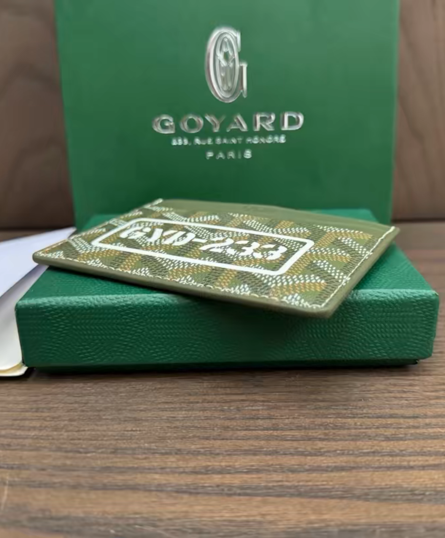 For this 2025' limited edition, the Saint-Sulpice card holder dresses up in an exclusive khaki Goyardine canvas. It features a "GYD-233" marquage inspired by the look of registration numbers of antique car trunks, as a nod to the Art of Travel by Goyard and our historic comptoir at 233 rue Saint-Honoré. The Saint-Sulpice card wallet is compact for organizing cards and papers or folded notes in its central pocket.