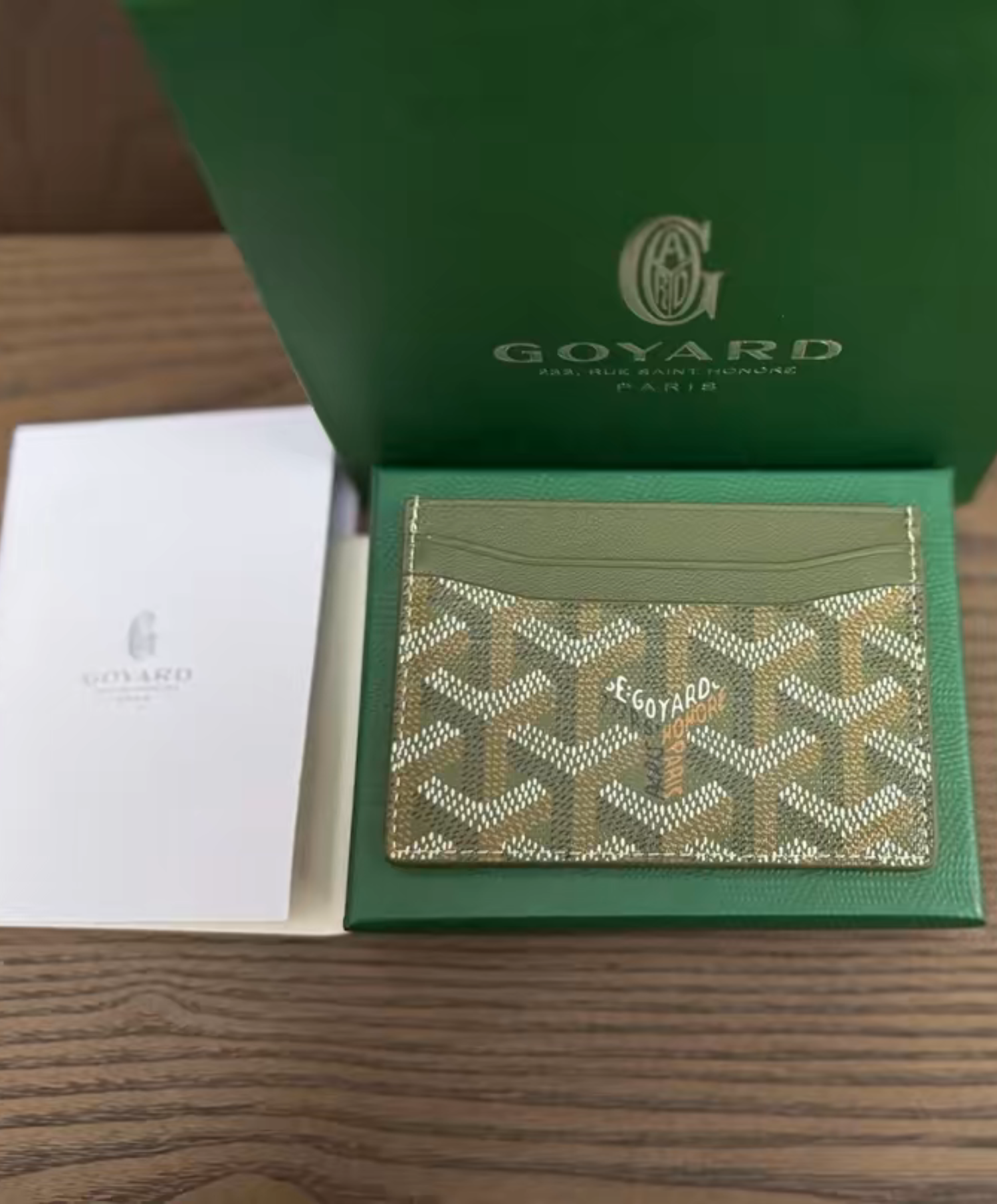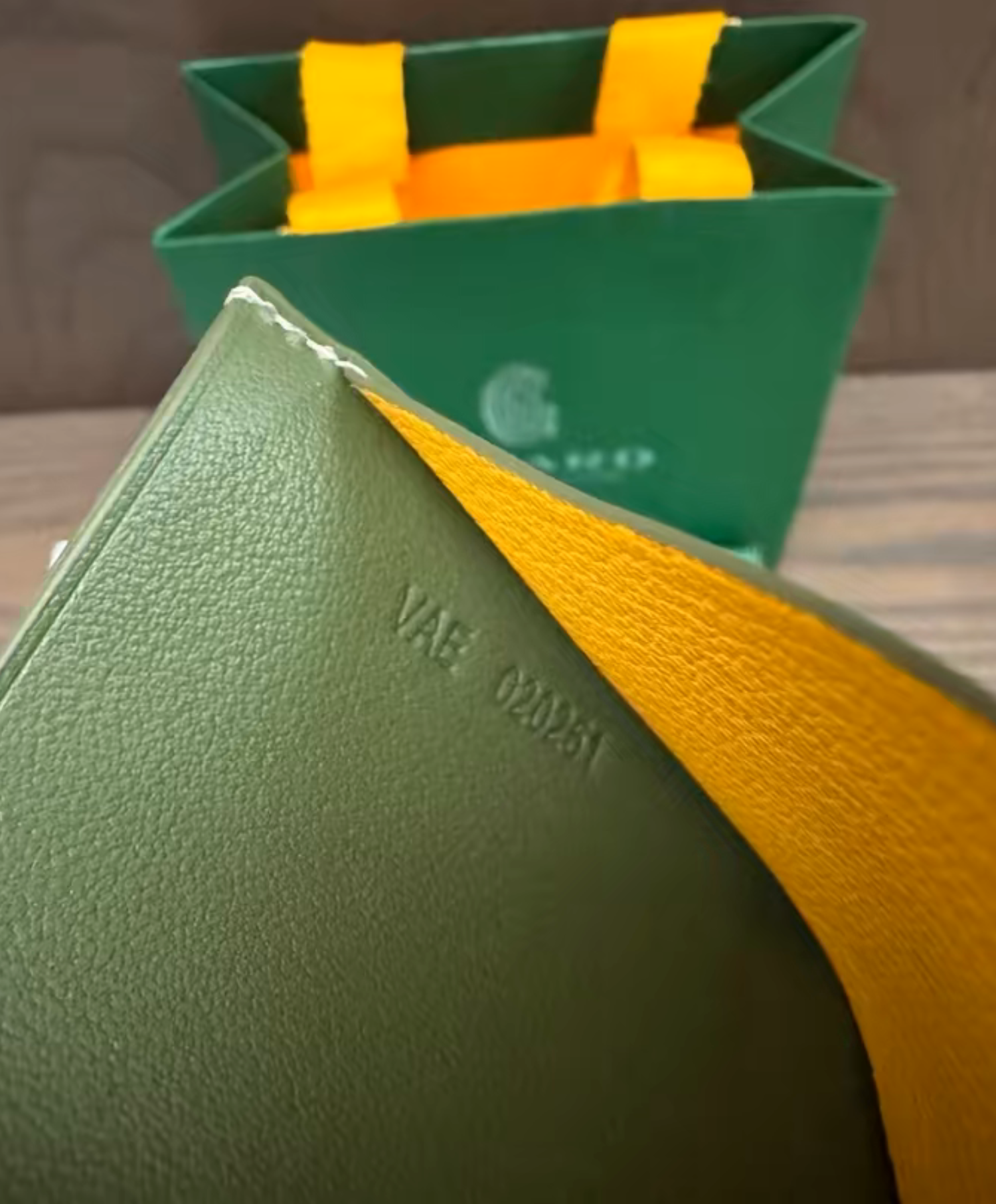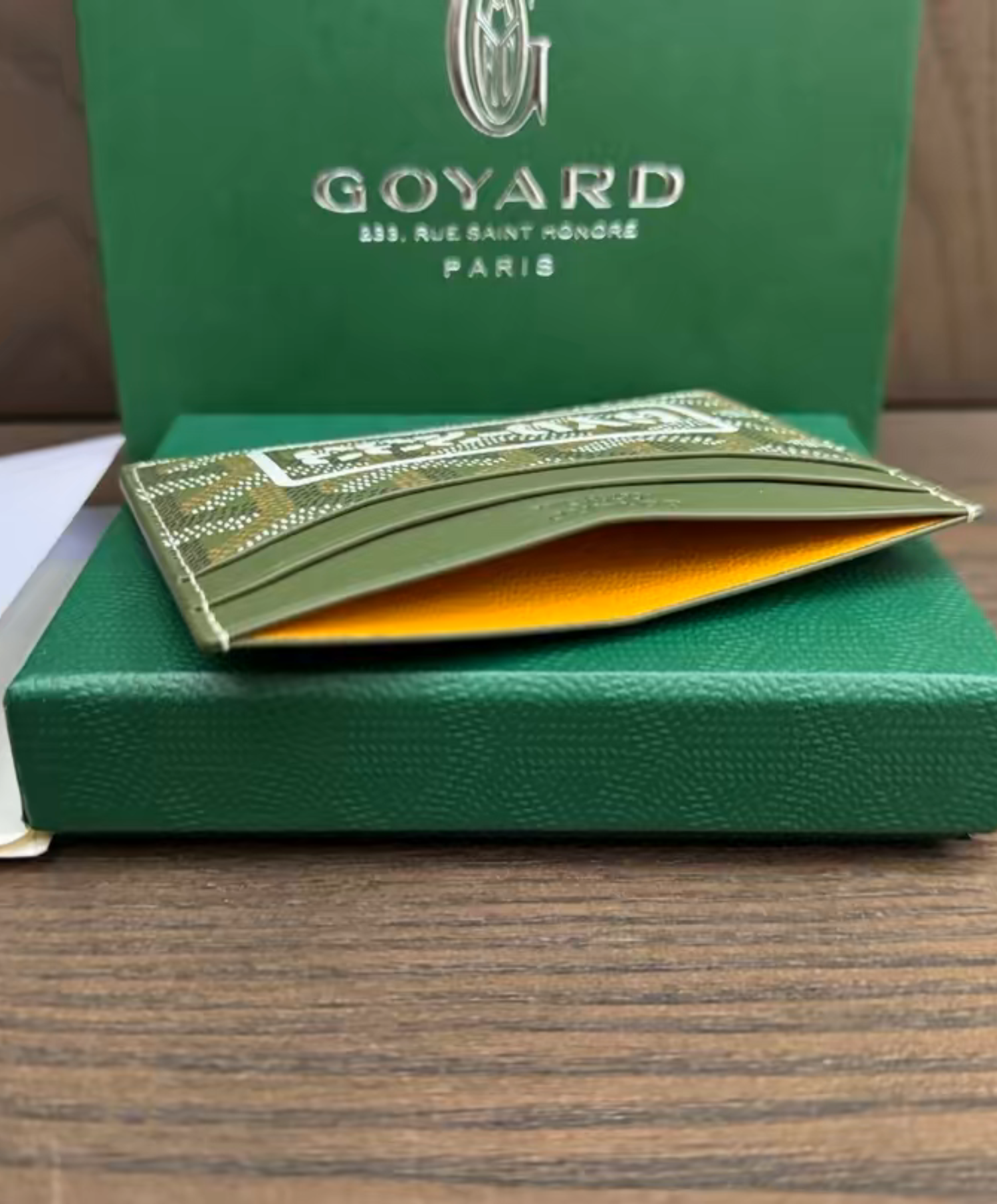 For this 2025' limited edition, the Saint-Sulpice card holder dresses up in an exclusive khaki Goyardine canvas. It features a "GYD-233" marquage inspired by the look of registration numbers of antique car trunks, as a nod to the Art of Travel by Goyard and our historic comptoir at 233 rue Saint-Honoré. The Saint-Sulpice card wallet is compact for organizing cards and papers or folded notes in its central pocket.