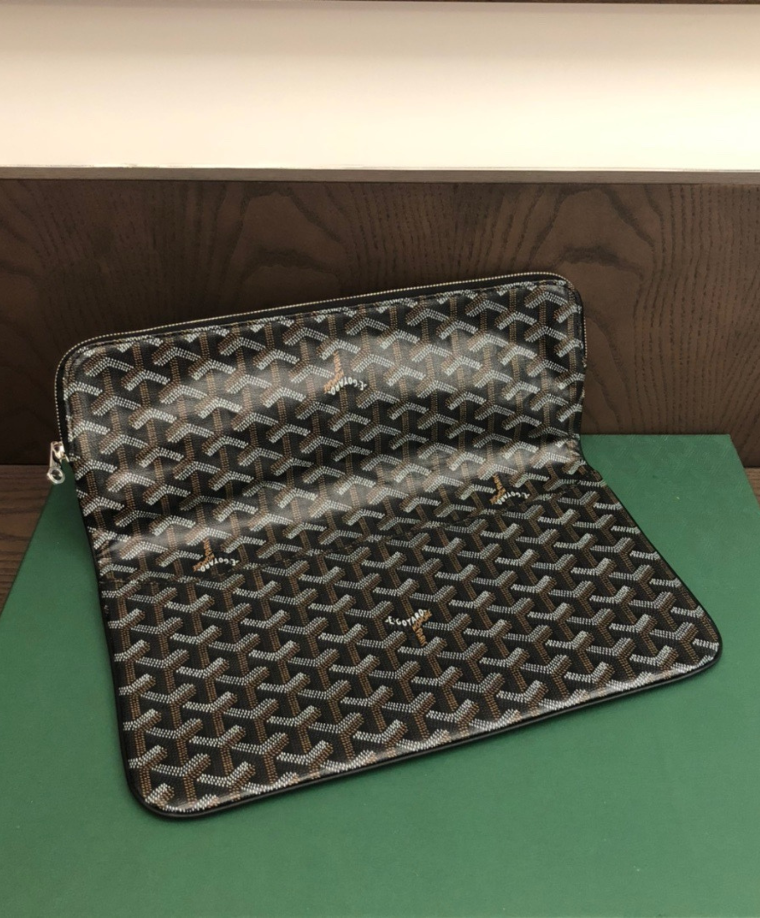 A true embodiment of understated elegance and refined practicality. The Sainte-Marie MM clutch by Goyard features a sleek design that reflects the maison’s exceptional craftsmanship. Made from the iconic Goyardine canvas, it is lightweight and easy to carry, making it an ideal choice for special occasions or for organizing essentials within larger bags. A streamlined silhouette that perfectly blends function and sophistication.