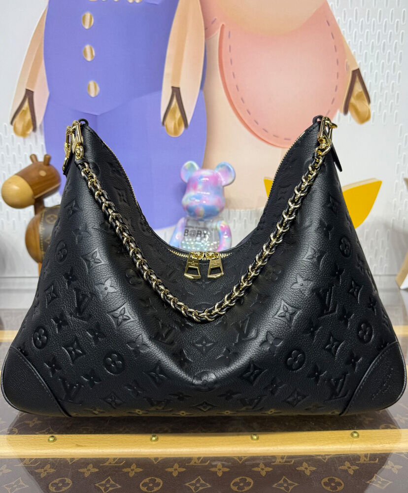 The classic Boulogne handbag is upscaled for the season in this capacious GM size, perfect for carrying a laptop and other essentials. Inspired by the archival model from 1984, this elegant design is crafted from Monogram Empreinte leather embellished with an exclusive golden braided chain that can be removed if desired. Wear it cross-body, over the shoulder or carry it by hand.